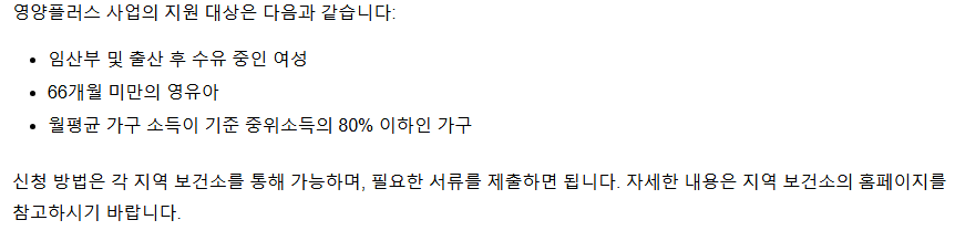 - 보충식품 패키지 지원: 영양이 부족한 가구에 대해 다양한 식품 패키지를 지원합니다.